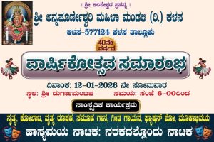 ಕಳಸ ಲೈವ್ ವರದಿ ಇಲ್ಲಿನ ಪ್ರತಿಷ್ಠಿತ ಶ್ರೀ ಅನ್ನಪೂರ್ಣೇಶ್ವರಿ ಮಹಿಳಾ ಮಂಡಳಿ (ರಿ.) ಇದರ 40ನೇ ವರ್ಷದ ವಾರ್ಷಿಕೋತ್ಸವ ಸಮಾರಂಭವು ಜನವರಿ 12ರ...