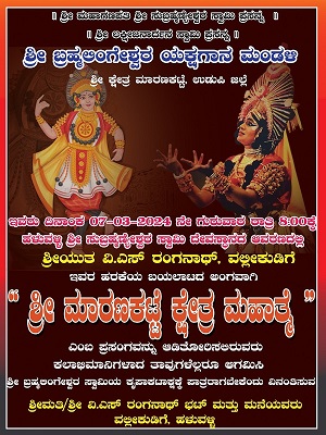 ಕಳಸ ಲೈವ್ ವರದಿ ಹಳುವಳ್ಳಿ ಶ್ರೀ ಸುಬ್ರಹ್ಮಣ್ಯೇಶ್ವರ ಸ್ವಾಮಿ ದೇವಸ್ಥಾನದ ಆವರಣದಲ್ಲಿ ಮಾರ್ಚ್ 7ರಂದು ರಾತ್ರಿ 8 ಗಂಟೆಯಿಂದ ಶ್ರೀ ಬ್ರಹ್ಮಲಿಂಗೇಶ್ವರ ಯಕ್ಷಗಾನ...