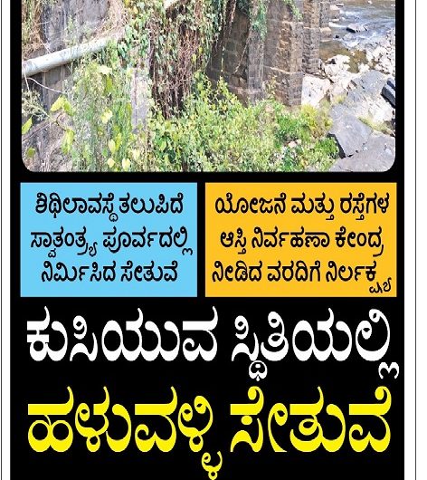 ಕಳಸ ವೈವ್ ವರದಿ ಸುಧೀಶ್ ಸುವರ್ಣ ಕಳಸ ಸ್ವಾತಂತ್ರ್ಯ ಪೂರ್ವದಲ್ಲಿ ಕಳಸ-ಬಾಳೆಹೊನ್ನೂರು ರಸ್ತೆ ಮಧ್ಯ ಭದ್ರಾ ನದಿಗೆ ಕಟ್ಟಿದ ಹಳುವಳ್ಳಿ ಸೇತುವೆ ಶಿಥಿಲಾವಸ್ಥೆ...