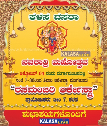 ಕಳಸ ಲೈವ್ ವರದಿ ಕಳಸ ಸಾರ್ವಜನಿಕ ಶ್ರೀ ದುರ್ಗಾಪೂಜಾ ಸಮಿತಿಯಿಂದ ನಡೆಯುತ್ತಿರುವ ಶ್ರೀ ದುರ್ಗಾ ಪೂಜಾ ಮಹೋತ್ಸವದ ಅಂಗವಾಗಿ ಮಂಗಳವಾರ ಶಿವಾನಿ ಆರ್ಕೇಸ್ಟ್ರಾ...