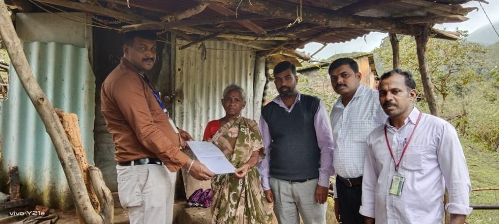ಮೂಡಿಗೆರೆ ಯೋಜನಾದಿಕಾರಿ ಶಿವಾನಂದ್, ಲಕ್ಷ್ಮಮ್ಮನವರಿಗೆ ಮಂಜೂರಾತಿ ಪತ್ರ ಹಸ್ತಾಂತರಿಸಿದರು, ಮೇಲ್ವಿಚಾರಕರಾದ ಶಿವರಾಜ್, ವಿಪತ್ತು ನಿರ್ವಹಣಾ ಸಂಯೋಜಕ