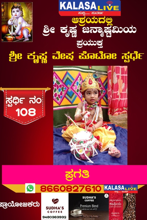 ಕಳಸ ಕಳಸ ತಾಲ್ಲೂಕು ಶ್ರೀ ಕೃಷ್ಣ ವೇಷ ಸ್ಪರ್ಧೆ ಸ್ಪರ್ಧಿ ನಂ: 108 ಪ್ರಗತಿ, SUDISH SUVARNA August 28, 2022 Spread the love Post navigation Previous ಶ್ರೀ ಕೃಷ್ಣ ವೇಷ ಸ್ಪರ್ಧೆ ಸ್ಪರ್ಧಿ ನಂ: 107 ಯಾಸ್ವಿ,Next ಶ್ರೀ ಕೃಷ್ಣ ವೇಷ ಸ್ಪರ್ಧೆ ಸ್ಪರ್ಧಿ ನಂ: 109 ಪ್ರಜನ್ ಶೆಟ್ಟಿ, Leave a Reply Cancel replyYour email address will not be published. Required fields are marked *Comment * Name * Email * Website Save my name, email, and website in this browser for the next time I comment. Related Stories ಹೊರನಾಡಿನಲ್ಲಿ ಪೊರಿಪಿನ ಮಾತೆ ಜಲದುರ್ಗೆ ನಾಟಕ ಏಪ್ರಿಲ್ 19ಕ್ಕೆ ಕಳಸ ತಾಲ್ಲೂಕು ಕ್ರೀಡೆ ಹೊರನಾಡು ಹೊರನಾಡಿನಲ್ಲಿ ಪೊರಿಪಿನ ಮಾತೆ ಜಲದುರ್ಗೆ ನಾಟಕ ಏಪ್ರಿಲ್ 19ಕ್ಕೆ April 18, 2026 ಕಳಸದಲ್ಲಿ ಕಾಡುಕೋಣನ ಅಟ್ಟಹಾಸಕ್ಕೆ ಬಲಿಯಾದ ಬಡ ಕಾರ್ಮಿಕ; ತಬ್ಬಲಿಯಾದ ಪುಟ್ಟ ಕಂದಮ್ಮ, ಗರ್ಭಿಣಿ ಪತ್ನಿಯ ಆಕ್ರಂದನ ಕಳಸ ಕಳಸ ತಾಲ್ಲೂಕು ಕ್ರೈಂ ಕಳಸದಲ್ಲಿ ಕಾಡುಕೋಣನ ಅಟ್ಟಹಾಸಕ್ಕೆ ಬಲಿಯಾದ ಬಡ ಕಾರ್ಮಿಕ; ತಬ್ಬಲಿಯಾದ ಪುಟ್ಟ ಕಂದಮ್ಮ, ಗರ್ಭಿಣಿ ಪತ್ನಿಯ ಆಕ್ರಂದನ April 18, 2026 ಬಾಳೆಹೊಳೆ: 23ನೇ ವರ್ಷದ ‘ವಸಂತ ವೇದ ಶಿಬಿರ’ಕ್ಕೆ ಚಾಲನೆ ಕಳಸ ಕಳಸ ತಾಲ್ಲೂಕು ಧಾರ್ಮಿಕ ಬಾಳೆಹೊಳೆ: 23ನೇ ವರ್ಷದ ‘ವಸಂತ ವೇದ ಶಿಬಿರ’ಕ್ಕೆ ಚಾಲನೆ April 17, 2026