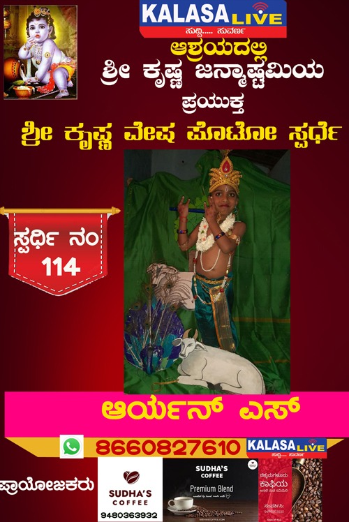 ಕಳಸ ಕಳಸ ತಾಲ್ಲೂಕು ಶ್ರೀ ಕೃಷ್ಣ ವೇಷ ಸ್ಪರ್ಧೆ ಸ್ಪರ್ಧಿ ನಂ: 114 ಆರ್ಯನ್ ಎನ್, SUDISH SUVARNA August 28, 2022 Spread the love Post navigation Previous ಶ್ರೀ ಕೃಷ್ಣ ವೇಷ ಸ್ಪರ್ಧೆ ಸ್ಪರ್ಧಿ ನಂ: 113 ಅಂಶಿ ಎ ರಾವ್,Next ಶ್ರೀ ಕೃಷ್ಣ ವೇಷ ಸ್ಪರ್ಧೆ ಸ್ಪರ್ಧಿ ನಂ: 115 ಶ್ರೇಯಸ್ಸ್, Leave a Reply Cancel replyYour email address will not be published. Required fields are marked *Comment * Name * Email * Website Save my name, email, and website in this browser for the next time I comment. Related Stories ಹೊರನಾಡಿನಲ್ಲಿ ಪೊರಿಪಿನ ಮಾತೆ ಜಲದುರ್ಗೆ ನಾಟಕ ಏಪ್ರಿಲ್ 19ಕ್ಕೆ ಕಳಸ ತಾಲ್ಲೂಕು ಕ್ರೀಡೆ ಹೊರನಾಡು ಹೊರನಾಡಿನಲ್ಲಿ ಪೊರಿಪಿನ ಮಾತೆ ಜಲದುರ್ಗೆ ನಾಟಕ ಏಪ್ರಿಲ್ 19ಕ್ಕೆ April 18, 2026 ಕಳಸದಲ್ಲಿ ಕಾಡುಕೋಣನ ಅಟ್ಟಹಾಸಕ್ಕೆ ಬಲಿಯಾದ ಬಡ ಕಾರ್ಮಿಕ; ತಬ್ಬಲಿಯಾದ ಪುಟ್ಟ ಕಂದಮ್ಮ, ಗರ್ಭಿಣಿ ಪತ್ನಿಯ ಆಕ್ರಂದನ ಕಳಸ ಕಳಸ ತಾಲ್ಲೂಕು ಕ್ರೈಂ ಕಳಸದಲ್ಲಿ ಕಾಡುಕೋಣನ ಅಟ್ಟಹಾಸಕ್ಕೆ ಬಲಿಯಾದ ಬಡ ಕಾರ್ಮಿಕ; ತಬ್ಬಲಿಯಾದ ಪುಟ್ಟ ಕಂದಮ್ಮ, ಗರ್ಭಿಣಿ ಪತ್ನಿಯ ಆಕ್ರಂದನ April 18, 2026 ಬಾಳೆಹೊಳೆ: 23ನೇ ವರ್ಷದ ‘ವಸಂತ ವೇದ ಶಿಬಿರ’ಕ್ಕೆ ಚಾಲನೆ ಕಳಸ ಕಳಸ ತಾಲ್ಲೂಕು ಧಾರ್ಮಿಕ ಬಾಳೆಹೊಳೆ: 23ನೇ ವರ್ಷದ ‘ವಸಂತ ವೇದ ಶಿಬಿರ’ಕ್ಕೆ ಚಾಲನೆ April 17, 2026