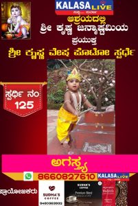 ಕಳಸ ಕಳಸ ತಾಲ್ಲೂಕು ಶ್ರೀ ಕೃಷ್ಣ ವೇಷ ಸ್ಪರ್ಧೆ ಸ್ಪರ್ಧಿ ನಂ: 125 ಅಗಸ್ತ್ಯ, SUDISH SUVARNA August 28, 2022 Spread the love Post navigation Previous ಶ್ರೀ ಕೃಷ್ಣ ವೇಷ ಸ್ಪರ್ಧೆ ಸ್ಪರ್ಧಿ ನಂ: 124 ಶ್ರಾವ್ಯ ಎಸ್,Next ಶ್ರೀ ಕೃಷ್ಣ ವೇಷ ಸ್ಪರ್ಧೆ ಸ್ಪರ್ಧಿ ನಂ: 126 ನಮ್ಯ ಪಿ, Leave a Reply Cancel replyYour email address will not be published. Required fields are marked *Comment * Name * Email * Website Save my name, email, and website in this browser for the next time I comment. Related Stories ಹೊರನಾಡಿನಲ್ಲಿ ಪೊರಿಪಿನ ಮಾತೆ ಜಲದುರ್ಗೆ ನಾಟಕ ಏಪ್ರಿಲ್ 19ಕ್ಕೆ ಕಳಸ ತಾಲ್ಲೂಕು ಕ್ರೀಡೆ ಹೊರನಾಡು ಹೊರನಾಡಿನಲ್ಲಿ ಪೊರಿಪಿನ ಮಾತೆ ಜಲದುರ್ಗೆ ನಾಟಕ ಏಪ್ರಿಲ್ 19ಕ್ಕೆ April 18, 2026 ಕಳಸದಲ್ಲಿ ಕಾಡುಕೋಣನ ಅಟ್ಟಹಾಸಕ್ಕೆ ಬಲಿಯಾದ ಬಡ ಕಾರ್ಮಿಕ; ತಬ್ಬಲಿಯಾದ ಪುಟ್ಟ ಕಂದಮ್ಮ, ಗರ್ಭಿಣಿ ಪತ್ನಿಯ ಆಕ್ರಂದನ ಕಳಸ ಕಳಸ ತಾಲ್ಲೂಕು ಕ್ರೈಂ ಕಳಸದಲ್ಲಿ ಕಾಡುಕೋಣನ ಅಟ್ಟಹಾಸಕ್ಕೆ ಬಲಿಯಾದ ಬಡ ಕಾರ್ಮಿಕ; ತಬ್ಬಲಿಯಾದ ಪುಟ್ಟ ಕಂದಮ್ಮ, ಗರ್ಭಿಣಿ ಪತ್ನಿಯ ಆಕ್ರಂದನ April 18, 2026 ಬಾಳೆಹೊಳೆ: 23ನೇ ವರ್ಷದ ‘ವಸಂತ ವೇದ ಶಿಬಿರ’ಕ್ಕೆ ಚಾಲನೆ ಕಳಸ ಕಳಸ ತಾಲ್ಲೂಕು ಧಾರ್ಮಿಕ ಬಾಳೆಹೊಳೆ: 23ನೇ ವರ್ಷದ ‘ವಸಂತ ವೇದ ಶಿಬಿರ’ಕ್ಕೆ ಚಾಲನೆ April 17, 2026