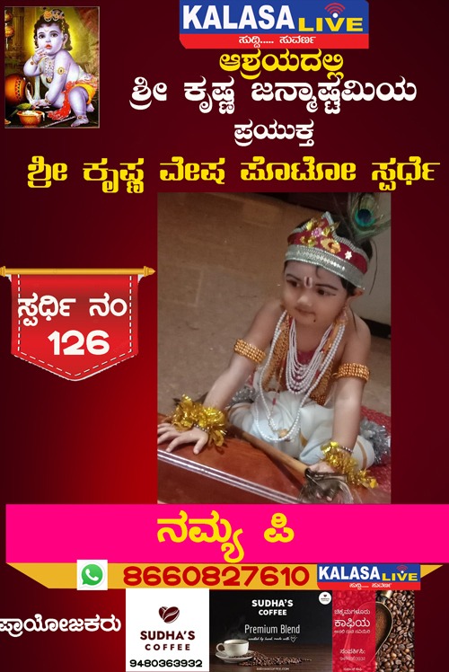 ಕಳಸ ಕಳಸ ತಾಲ್ಲೂಕು ಶ್ರೀ ಕೃಷ್ಣ ವೇಷ ಸ್ಪರ್ಧೆ ಸ್ಪರ್ಧಿ ನಂ: 126 ನಮ್ಯ ಪಿ, SUDISH SUVARNA August 28, 2022 Spread the love Post navigation Previous ಶ್ರೀ ಕೃಷ್ಣ ವೇಷ ಸ್ಪರ್ಧೆ ಸ್ಪರ್ಧಿ ನಂ: 125 ಅಗಸ್ತ್ಯ,Next ಶ್ರೀ ಕೃಷ್ಣ ವೇಷ ಸ್ಪರ್ಧೆ ಸ್ಪರ್ಧಿ ನಂ: 127 ನಿಸ್ವಾಥ್, Leave a Reply Cancel replyYour email address will not be published. Required fields are marked *Comment * Name * Email * Website Save my name, email, and website in this browser for the next time I comment. Related Stories ಹೊರನಾಡಿನಲ್ಲಿ ಪೊರಿಪಿನ ಮಾತೆ ಜಲದುರ್ಗೆ ನಾಟಕ ಏಪ್ರಿಲ್ 19ಕ್ಕೆ ಕಳಸ ತಾಲ್ಲೂಕು ಕ್ರೀಡೆ ಹೊರನಾಡು ಹೊರನಾಡಿನಲ್ಲಿ ಪೊರಿಪಿನ ಮಾತೆ ಜಲದುರ್ಗೆ ನಾಟಕ ಏಪ್ರಿಲ್ 19ಕ್ಕೆ April 18, 2026 ಕಳಸದಲ್ಲಿ ಕಾಡುಕೋಣನ ಅಟ್ಟಹಾಸಕ್ಕೆ ಬಲಿಯಾದ ಬಡ ಕಾರ್ಮಿಕ; ತಬ್ಬಲಿಯಾದ ಪುಟ್ಟ ಕಂದಮ್ಮ, ಗರ್ಭಿಣಿ ಪತ್ನಿಯ ಆಕ್ರಂದನ ಕಳಸ ಕಳಸ ತಾಲ್ಲೂಕು ಕ್ರೈಂ ಕಳಸದಲ್ಲಿ ಕಾಡುಕೋಣನ ಅಟ್ಟಹಾಸಕ್ಕೆ ಬಲಿಯಾದ ಬಡ ಕಾರ್ಮಿಕ; ತಬ್ಬಲಿಯಾದ ಪುಟ್ಟ ಕಂದಮ್ಮ, ಗರ್ಭಿಣಿ ಪತ್ನಿಯ ಆಕ್ರಂದನ April 18, 2026 ಬಾಳೆಹೊಳೆ: 23ನೇ ವರ್ಷದ ‘ವಸಂತ ವೇದ ಶಿಬಿರ’ಕ್ಕೆ ಚಾಲನೆ ಕಳಸ ಕಳಸ ತಾಲ್ಲೂಕು ಧಾರ್ಮಿಕ ಬಾಳೆಹೊಳೆ: 23ನೇ ವರ್ಷದ ‘ವಸಂತ ವೇದ ಶಿಬಿರ’ಕ್ಕೆ ಚಾಲನೆ April 17, 2026