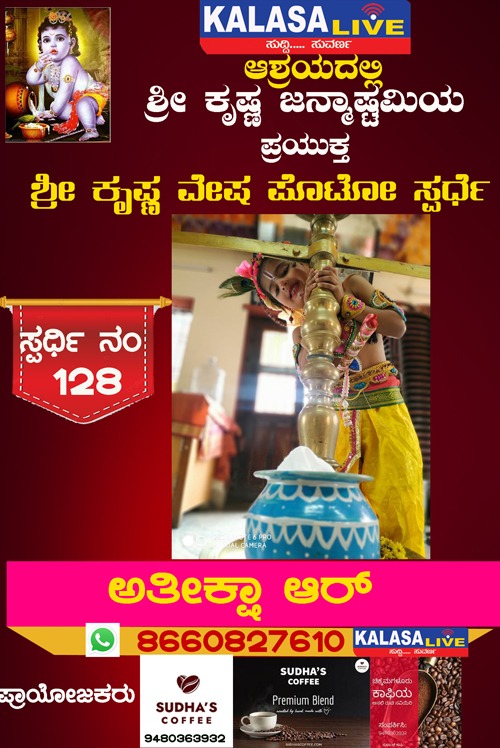 ಕಳಸ ಕಳಸ ತಾಲ್ಲೂಕು ಶ್ರೀ ಕೃಷ್ಣ ವೇಷ ಸ್ಪರ್ಧೆ ಸ್ಪರ್ಧಿ ನಂ: 128 ಅತೀಕ್ಷಾ ಆರ್, SUDISH SUVARNA August 28, 2022 Spread the love Post navigation Previous ಶ್ರೀ ಕೃಷ್ಣ ವೇಷ ಸ್ಪರ್ಧೆ ಸ್ಪರ್ಧಿ ನಂ: 127 ನಿಸ್ವಾಥ್,Next ಶ್ರೀ ಕೃಷ್ಣ ವೇಷ ಸ್ಪರ್ಧೆ ಸ್ಪರ್ಧಿ ನಂ: 129 ಸ್ವಾಧಿನ್, Leave a Reply Cancel replyYour email address will not be published. Required fields are marked *Comment * Name * Email * Website Save my name, email, and website in this browser for the next time I comment. Related Stories ಹೊರನಾಡಿನಲ್ಲಿ ಪೊರಿಪಿನ ಮಾತೆ ಜಲದುರ್ಗೆ ನಾಟಕ ಏಪ್ರಿಲ್ 19ಕ್ಕೆ ಕಳಸ ತಾಲ್ಲೂಕು ಕ್ರೀಡೆ ಹೊರನಾಡು ಹೊರನಾಡಿನಲ್ಲಿ ಪೊರಿಪಿನ ಮಾತೆ ಜಲದುರ್ಗೆ ನಾಟಕ ಏಪ್ರಿಲ್ 19ಕ್ಕೆ April 18, 2026 ಕಳಸದಲ್ಲಿ ಕಾಡುಕೋಣನ ಅಟ್ಟಹಾಸಕ್ಕೆ ಬಲಿಯಾದ ಬಡ ಕಾರ್ಮಿಕ; ತಬ್ಬಲಿಯಾದ ಪುಟ್ಟ ಕಂದಮ್ಮ, ಗರ್ಭಿಣಿ ಪತ್ನಿಯ ಆಕ್ರಂದನ ಕಳಸ ಕಳಸ ತಾಲ್ಲೂಕು ಕ್ರೈಂ ಕಳಸದಲ್ಲಿ ಕಾಡುಕೋಣನ ಅಟ್ಟಹಾಸಕ್ಕೆ ಬಲಿಯಾದ ಬಡ ಕಾರ್ಮಿಕ; ತಬ್ಬಲಿಯಾದ ಪುಟ್ಟ ಕಂದಮ್ಮ, ಗರ್ಭಿಣಿ ಪತ್ನಿಯ ಆಕ್ರಂದನ April 18, 2026 ಬಾಳೆಹೊಳೆ: 23ನೇ ವರ್ಷದ ‘ವಸಂತ ವೇದ ಶಿಬಿರ’ಕ್ಕೆ ಚಾಲನೆ ಕಳಸ ಕಳಸ ತಾಲ್ಲೂಕು ಧಾರ್ಮಿಕ ಬಾಳೆಹೊಳೆ: 23ನೇ ವರ್ಷದ ‘ವಸಂತ ವೇದ ಶಿಬಿರ’ಕ್ಕೆ ಚಾಲನೆ April 17, 2026
