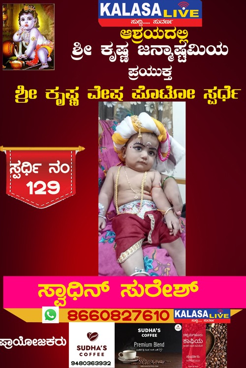 ಕಳಸ ಕಳಸ ತಾಲ್ಲೂಕು ಶ್ರೀ ಕೃಷ್ಣ ವೇಷ ಸ್ಪರ್ಧೆ ಸ್ಪರ್ಧಿ ನಂ: 129 ಸ್ವಾಧಿನ್, SUDISH SUVARNA August 28, 2022 Spread the love Post navigation Previous ಶ್ರೀ ಕೃಷ್ಣ ವೇಷ ಸ್ಪರ್ಧೆ ಸ್ಪರ್ಧಿ ನಂ: 128 ಅತೀಕ್ಷಾ ಆರ್,Next ಶ್ರೀ ಕೃಷ್ಣ ವೇಷ ಸ್ಪರ್ಧೆ ಸ್ಪರ್ಧಿ ನಂ: 130 ನಾಗಶ್ರೀ, Leave a Reply Cancel replyYour email address will not be published. Required fields are marked *Comment * Name * Email * Website Save my name, email, and website in this browser for the next time I comment. Related Stories ಕಳಸದಲ್ಲಿ ಬಿಜೆಪಿ ನೂತನ ಅಧ್ಯಕ್ಷರ ಪದಗ್ರಹಣ ಹಾಗೂ ಕಾರ್ಯಕರ್ತರ ಸಮಾವೇಶ ಎಪ್ರಿಲ್ 22ಕ್ಕೆ ಕಳಸ ಕಳಸ ತಾಲ್ಲೂಕು ರಾಜಕೀಯ ಕಳಸದಲ್ಲಿ ಬಿಜೆಪಿ ನೂತನ ಅಧ್ಯಕ್ಷರ ಪದಗ್ರಹಣ ಹಾಗೂ ಕಾರ್ಯಕರ್ತರ ಸಮಾವೇಶ ಎಪ್ರಿಲ್ 22ಕ್ಕೆ April 19, 2026 ಹೊರನಾಡಿನಲ್ಲಿ ಪೊರಿಪಿನ ಮಾತೆ ಜಲದುರ್ಗೆ ನಾಟಕ ಏಪ್ರಿಲ್ 19ಕ್ಕೆ ಕಳಸ ತಾಲ್ಲೂಕು ಕ್ರೀಡೆ ಹೊರನಾಡು ಹೊರನಾಡಿನಲ್ಲಿ ಪೊರಿಪಿನ ಮಾತೆ ಜಲದುರ್ಗೆ ನಾಟಕ ಏಪ್ರಿಲ್ 19ಕ್ಕೆ April 18, 2026 ಕಳಸದಲ್ಲಿ ಕಾಡುಕೋಣನ ಅಟ್ಟಹಾಸಕ್ಕೆ ಬಲಿಯಾದ ಬಡ ಕಾರ್ಮಿಕ; ತಬ್ಬಲಿಯಾದ ಪುಟ್ಟ ಕಂದಮ್ಮ, ಗರ್ಭಿಣಿ ಪತ್ನಿಯ ಆಕ್ರಂದನ ಕಳಸ ಕಳಸ ತಾಲ್ಲೂಕು ಕ್ರೈಂ ಕಳಸದಲ್ಲಿ ಕಾಡುಕೋಣನ ಅಟ್ಟಹಾಸಕ್ಕೆ ಬಲಿಯಾದ ಬಡ ಕಾರ್ಮಿಕ; ತಬ್ಬಲಿಯಾದ ಪುಟ್ಟ ಕಂದಮ್ಮ, ಗರ್ಭಿಣಿ ಪತ್ನಿಯ ಆಕ್ರಂದನ April 18, 2026