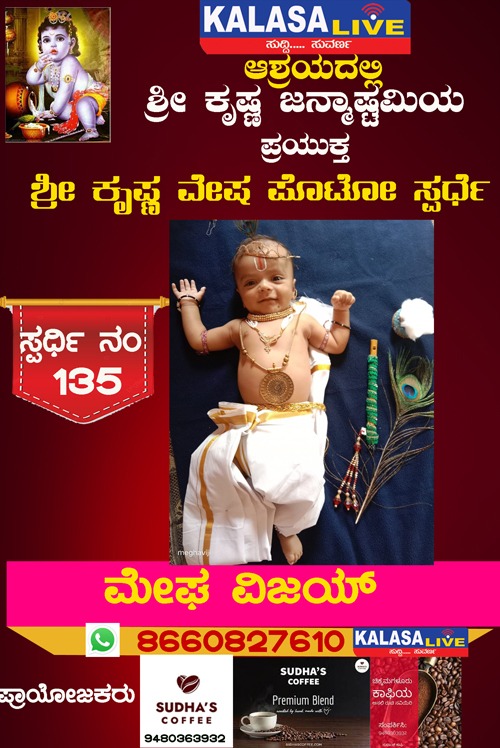 ಕಳಸ ಕಳಸ ತಾಲ್ಲೂಕು ಶ್ರೀ ಕೃಷ್ಣ ವೇಷ ಸ್ಪರ್ಧೆ ಸ್ಪರ್ಧಿ ನಂ: 135 ಮೇಘ ವಿಜಯ್, SUDISH SUVARNA August 28, 2022 Spread the love Post navigation Previous ಶ್ರೀ ಕೃಷ್ಣ ವೇಷ ಸ್ಪರ್ಧೆ ಸ್ಪರ್ಧಿ ನಂ: 134 ಪ್ರೇಕ್ಷಾ ವಿ,Next ಶ್ರೀ ಕೃಷ್ಣ ವೇಷ ಸ್ಪರ್ಧೆ ಸ್ಪರ್ಧಿ ನಂ: 136 ಜಗನ್ಪ್ರೀತ್, Leave a Reply Cancel replyYour email address will not be published. Required fields are marked *Comment * Name * Email * Website Save my name, email, and website in this browser for the next time I comment. Related Stories ಹೊರನಾಡಿನಲ್ಲಿ ಪೊರಿಪಿನ ಮಾತೆ ಜಲದುರ್ಗೆ ನಾಟಕ ಏಪ್ರಿಲ್ 19ಕ್ಕೆ ಕಳಸ ತಾಲ್ಲೂಕು ಕ್ರೀಡೆ ಹೊರನಾಡು ಹೊರನಾಡಿನಲ್ಲಿ ಪೊರಿಪಿನ ಮಾತೆ ಜಲದುರ್ಗೆ ನಾಟಕ ಏಪ್ರಿಲ್ 19ಕ್ಕೆ April 18, 2026 ಕಳಸದಲ್ಲಿ ಕಾಡುಕೋಣನ ಅಟ್ಟಹಾಸಕ್ಕೆ ಬಲಿಯಾದ ಬಡ ಕಾರ್ಮಿಕ; ತಬ್ಬಲಿಯಾದ ಪುಟ್ಟ ಕಂದಮ್ಮ, ಗರ್ಭಿಣಿ ಪತ್ನಿಯ ಆಕ್ರಂದನ ಕಳಸ ಕಳಸ ತಾಲ್ಲೂಕು ಕ್ರೈಂ ಕಳಸದಲ್ಲಿ ಕಾಡುಕೋಣನ ಅಟ್ಟಹಾಸಕ್ಕೆ ಬಲಿಯಾದ ಬಡ ಕಾರ್ಮಿಕ; ತಬ್ಬಲಿಯಾದ ಪುಟ್ಟ ಕಂದಮ್ಮ, ಗರ್ಭಿಣಿ ಪತ್ನಿಯ ಆಕ್ರಂದನ April 18, 2026 ಬಾಳೆಹೊಳೆ: 23ನೇ ವರ್ಷದ ‘ವಸಂತ ವೇದ ಶಿಬಿರ’ಕ್ಕೆ ಚಾಲನೆ ಕಳಸ ಕಳಸ ತಾಲ್ಲೂಕು ಧಾರ್ಮಿಕ ಬಾಳೆಹೊಳೆ: 23ನೇ ವರ್ಷದ ‘ವಸಂತ ವೇದ ಶಿಬಿರ’ಕ್ಕೆ ಚಾಲನೆ April 17, 2026