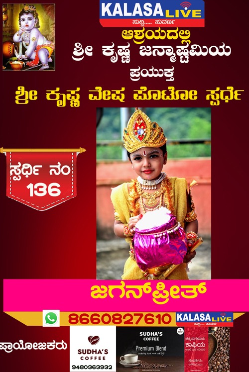 ಕಳಸ ಕಳಸ ತಾಲ್ಲೂಕು ಶ್ರೀ ಕೃಷ್ಣ ವೇಷ ಸ್ಪರ್ಧೆ ಸ್ಪರ್ಧಿ ನಂ: 136 ಜಗನ್ಪ್ರೀತ್, SUDISH SUVARNA August 28, 2022 Spread the love Post navigation Previous ಶ್ರೀ ಕೃಷ್ಣ ವೇಷ ಸ್ಪರ್ಧೆ ಸ್ಪರ್ಧಿ ನಂ: 135 ಮೇಘ ವಿಜಯ್,Next ಹೊರನಾಡಿಗೆ ಬೇಟಿ ನೀಡಿದ ಸಚಿವ ವಿ .ಸೋಮಣ್ಣ Leave a Reply Cancel replyYour email address will not be published. Required fields are marked *Comment * Name * Email * Website Save my name, email, and website in this browser for the next time I comment. Related Stories ಕಳಸದಲ್ಲಿ ಬಿಜೆಪಿ ನೂತನ ಅಧ್ಯಕ್ಷರ ಪದಗ್ರಹಣ ಹಾಗೂ ಕಾರ್ಯಕರ್ತರ ಸಮಾವೇಶ ಎಪ್ರಿಲ್ 22ಕ್ಕೆ ಕಳಸ ಕಳಸ ತಾಲ್ಲೂಕು ರಾಜಕೀಯ ಕಳಸದಲ್ಲಿ ಬಿಜೆಪಿ ನೂತನ ಅಧ್ಯಕ್ಷರ ಪದಗ್ರಹಣ ಹಾಗೂ ಕಾರ್ಯಕರ್ತರ ಸಮಾವೇಶ ಎಪ್ರಿಲ್ 22ಕ್ಕೆ April 19, 2026 ಹೊರನಾಡಿನಲ್ಲಿ ಪೊರಿಪಿನ ಮಾತೆ ಜಲದುರ್ಗೆ ನಾಟಕ ಏಪ್ರಿಲ್ 19ಕ್ಕೆ ಕಳಸ ತಾಲ್ಲೂಕು ಕ್ರೀಡೆ ಹೊರನಾಡು ಹೊರನಾಡಿನಲ್ಲಿ ಪೊರಿಪಿನ ಮಾತೆ ಜಲದುರ್ಗೆ ನಾಟಕ ಏಪ್ರಿಲ್ 19ಕ್ಕೆ April 18, 2026 ಕಳಸದಲ್ಲಿ ಕಾಡುಕೋಣನ ಅಟ್ಟಹಾಸಕ್ಕೆ ಬಲಿಯಾದ ಬಡ ಕಾರ್ಮಿಕ; ತಬ್ಬಲಿಯಾದ ಪುಟ್ಟ ಕಂದಮ್ಮ, ಗರ್ಭಿಣಿ ಪತ್ನಿಯ ಆಕ್ರಂದನ ಕಳಸ ಕಳಸ ತಾಲ್ಲೂಕು ಕ್ರೈಂ ಕಳಸದಲ್ಲಿ ಕಾಡುಕೋಣನ ಅಟ್ಟಹಾಸಕ್ಕೆ ಬಲಿಯಾದ ಬಡ ಕಾರ್ಮಿಕ; ತಬ್ಬಲಿಯಾದ ಪುಟ್ಟ ಕಂದಮ್ಮ, ಗರ್ಭಿಣಿ ಪತ್ನಿಯ ಆಕ್ರಂದನ April 18, 2026