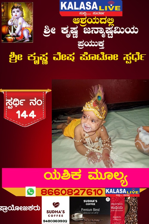 ಕಳಸ ಕಳಸ ತಾಲ್ಲೂಕು ಶ್ರೀ ಕೃಷ್ಣ ವೇಷ ಸ್ಪರ್ಧೆ ಸ್ಪರ್ಧಿ ನಂ:144 ಯಶಿಕ ಮೂಲ್ಯ, SUDISH SUVARNA August 28, 2022 Spread the love Post navigation Previous ಶ್ರೀ ಕೃಷ್ಣ ವೇಷ ಸ್ಪರ್ಧೆ ಸ್ಪರ್ಧಿ ನಂ:143 ಆದ್ವಿ ಎಸ್ ಜೈನ್,Next ಶ್ರೀ ಕೃಷ್ಣ ವೇಷ ಸ್ಪರ್ಧೆ ಸ್ಪರ್ಧಿ ನಂ:145 ಆಯುಷ್ ಹೆಬ್ಬಾರ್, Leave a Reply Cancel replyYour email address will not be published. Required fields are marked *Comment * Name * Email * Website Save my name, email, and website in this browser for the next time I comment. Related Stories ಹೊರನಾಡಿನಲ್ಲಿ ಪೊರಿಪಿನ ಮಾತೆ ಜಲದುರ್ಗೆ ನಾಟಕ ಏಪ್ರಿಲ್ 19ಕ್ಕೆ ಕಳಸ ತಾಲ್ಲೂಕು ಕ್ರೀಡೆ ಹೊರನಾಡು ಹೊರನಾಡಿನಲ್ಲಿ ಪೊರಿಪಿನ ಮಾತೆ ಜಲದುರ್ಗೆ ನಾಟಕ ಏಪ್ರಿಲ್ 19ಕ್ಕೆ April 18, 2026 ಕಳಸದಲ್ಲಿ ಕಾಡುಕೋಣನ ಅಟ್ಟಹಾಸಕ್ಕೆ ಬಲಿಯಾದ ಬಡ ಕಾರ್ಮಿಕ; ತಬ್ಬಲಿಯಾದ ಪುಟ್ಟ ಕಂದಮ್ಮ, ಗರ್ಭಿಣಿ ಪತ್ನಿಯ ಆಕ್ರಂದನ ಕಳಸ ಕಳಸ ತಾಲ್ಲೂಕು ಕ್ರೈಂ ಕಳಸದಲ್ಲಿ ಕಾಡುಕೋಣನ ಅಟ್ಟಹಾಸಕ್ಕೆ ಬಲಿಯಾದ ಬಡ ಕಾರ್ಮಿಕ; ತಬ್ಬಲಿಯಾದ ಪುಟ್ಟ ಕಂದಮ್ಮ, ಗರ್ಭಿಣಿ ಪತ್ನಿಯ ಆಕ್ರಂದನ April 18, 2026 ಬಾಳೆಹೊಳೆ: 23ನೇ ವರ್ಷದ ‘ವಸಂತ ವೇದ ಶಿಬಿರ’ಕ್ಕೆ ಚಾಲನೆ ಕಳಸ ಕಳಸ ತಾಲ್ಲೂಕು ಧಾರ್ಮಿಕ ಬಾಳೆಹೊಳೆ: 23ನೇ ವರ್ಷದ ‘ವಸಂತ ವೇದ ಶಿಬಿರ’ಕ್ಕೆ ಚಾಲನೆ April 17, 2026