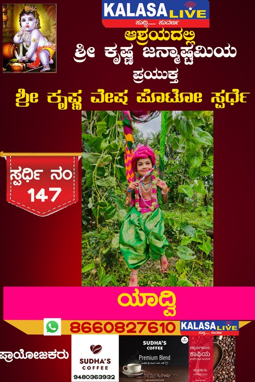 ಕಳಸ ಕಳಸ ತಾಲ್ಲೂಕು ಶ್ರೀ ಕೃಷ್ಣ ವೇಷ ಸ್ಪರ್ಧೆ ಸ್ಪರ್ಧಿ ನಂ:147 ಯಾದ್ವಿ, SUDISH SUVARNA August 28, 2022 Spread the love Post navigation Previous ಶ್ರೀ ಕೃಷ್ಣ ವೇಷ ಸ್ಪರ್ಧೆ ಸ್ಪರ್ಧಿ ನಂ:145 ಆಯುಷ್ ಹೆಬ್ಬಾರ್,Next ಶ್ರೀ ಕೃಷ್ಣ ವೇಷ ಸ್ಪರ್ಧೆ ಸ್ಪರ್ಧಿ ನಂ: 148 ಶ್ಲೋಕ ಆರ್, Leave a Reply Cancel replyYour email address will not be published. Required fields are marked *Comment * Name * Email * Website Save my name, email, and website in this browser for the next time I comment. Related Stories ಹೊರನಾಡಿನಲ್ಲಿ ಪೊರಿಪಿನ ಮಾತೆ ಜಲದುರ್ಗೆ ನಾಟಕ ಏಪ್ರಿಲ್ 19ಕ್ಕೆ ಕಳಸ ತಾಲ್ಲೂಕು ಕ್ರೀಡೆ ಹೊರನಾಡು ಹೊರನಾಡಿನಲ್ಲಿ ಪೊರಿಪಿನ ಮಾತೆ ಜಲದುರ್ಗೆ ನಾಟಕ ಏಪ್ರಿಲ್ 19ಕ್ಕೆ April 18, 2026 ಕಳಸದಲ್ಲಿ ಕಾಡುಕೋಣನ ಅಟ್ಟಹಾಸಕ್ಕೆ ಬಲಿಯಾದ ಬಡ ಕಾರ್ಮಿಕ; ತಬ್ಬಲಿಯಾದ ಪುಟ್ಟ ಕಂದಮ್ಮ, ಗರ್ಭಿಣಿ ಪತ್ನಿಯ ಆಕ್ರಂದನ ಕಳಸ ಕಳಸ ತಾಲ್ಲೂಕು ಕ್ರೈಂ ಕಳಸದಲ್ಲಿ ಕಾಡುಕೋಣನ ಅಟ್ಟಹಾಸಕ್ಕೆ ಬಲಿಯಾದ ಬಡ ಕಾರ್ಮಿಕ; ತಬ್ಬಲಿಯಾದ ಪುಟ್ಟ ಕಂದಮ್ಮ, ಗರ್ಭಿಣಿ ಪತ್ನಿಯ ಆಕ್ರಂದನ April 18, 2026 ಬಾಳೆಹೊಳೆ: 23ನೇ ವರ್ಷದ ‘ವಸಂತ ವೇದ ಶಿಬಿರ’ಕ್ಕೆ ಚಾಲನೆ ಕಳಸ ಕಳಸ ತಾಲ್ಲೂಕು ಧಾರ್ಮಿಕ ಬಾಳೆಹೊಳೆ: 23ನೇ ವರ್ಷದ ‘ವಸಂತ ವೇದ ಶಿಬಿರ’ಕ್ಕೆ ಚಾಲನೆ April 17, 2026