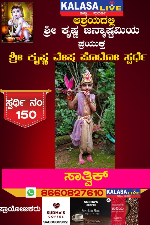 ಕಳಸ ಕಳಸ ತಾಲ್ಲೂಕು ಶ್ರೀ ಕೃಷ್ಣ ವೇಷ ಸ್ಪರ್ಧೆ ಸ್ಪರ್ಧಿ ನಂ: 150 ಸಾತ್ವಿಕ್, SUDISH SUVARNA August 28, 2022 Spread the love Post navigation Previous ಶ್ರೀ ಕೃಷ್ಣ ವೇಷ ಸ್ಪರ್ಧೆ ಸ್ಪರ್ಧಿ ನಂ:149 ನಮನ್,Next ಶ್ರೀ ಕೃಷ್ಣ ವೇಷ ಸ್ಪರ್ಧೆ ಸ್ಪರ್ಧಿ ನಂ: 151 ಚೈತನ್ಯ ಪ್ರಸಾದ್, Leave a Reply Cancel replyYour email address will not be published. Required fields are marked *Comment * Name * Email * Website Save my name, email, and website in this browser for the next time I comment. Related Stories ಹೊರನಾಡಿನಲ್ಲಿ ಪೊರಿಪಿನ ಮಾತೆ ಜಲದುರ್ಗೆ ನಾಟಕ ಏಪ್ರಿಲ್ 19ಕ್ಕೆ ಕಳಸ ತಾಲ್ಲೂಕು ಕ್ರೀಡೆ ಹೊರನಾಡು ಹೊರನಾಡಿನಲ್ಲಿ ಪೊರಿಪಿನ ಮಾತೆ ಜಲದುರ್ಗೆ ನಾಟಕ ಏಪ್ರಿಲ್ 19ಕ್ಕೆ April 18, 2026 ಕಳಸದಲ್ಲಿ ಕಾಡುಕೋಣನ ಅಟ್ಟಹಾಸಕ್ಕೆ ಬಲಿಯಾದ ಬಡ ಕಾರ್ಮಿಕ; ತಬ್ಬಲಿಯಾದ ಪುಟ್ಟ ಕಂದಮ್ಮ, ಗರ್ಭಿಣಿ ಪತ್ನಿಯ ಆಕ್ರಂದನ ಕಳಸ ಕಳಸ ತಾಲ್ಲೂಕು ಕ್ರೈಂ ಕಳಸದಲ್ಲಿ ಕಾಡುಕೋಣನ ಅಟ್ಟಹಾಸಕ್ಕೆ ಬಲಿಯಾದ ಬಡ ಕಾರ್ಮಿಕ; ತಬ್ಬಲಿಯಾದ ಪುಟ್ಟ ಕಂದಮ್ಮ, ಗರ್ಭಿಣಿ ಪತ್ನಿಯ ಆಕ್ರಂದನ April 18, 2026 ಬಾಳೆಹೊಳೆ: 23ನೇ ವರ್ಷದ ‘ವಸಂತ ವೇದ ಶಿಬಿರ’ಕ್ಕೆ ಚಾಲನೆ ಕಳಸ ಕಳಸ ತಾಲ್ಲೂಕು ಧಾರ್ಮಿಕ ಬಾಳೆಹೊಳೆ: 23ನೇ ವರ್ಷದ ‘ವಸಂತ ವೇದ ಶಿಬಿರ’ಕ್ಕೆ ಚಾಲನೆ April 17, 2026