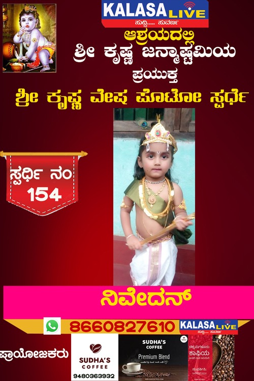 ಕಳಸ ಕಳಸ ತಾಲ್ಲೂಕು ಶ್ರೀ ಕೃಷ್ಣ ವೇಷ ಸ್ಪರ್ಧೆ ಸ್ಪರ್ಧಿ ನಂ: 154 ನಿವೇದನ್, SUDISH SUVARNA August 28, 2022 Spread the love Post navigation Previous ಶ್ರೀ ಕೃಷ್ಣ ವೇಷ ಸ್ಪರ್ಧೆ ಸ್ಪರ್ಧಿ ನಂ:153 ಕರಣ್ ಕೆ,Next ಶ್ರೀ ಕೃಷ್ಣ ವೇಷ ಸ್ಪರ್ಧೆ ಸ್ಪರ್ಧಿ ನಂ: 155 ಸುಮೋಕ್ಷಿತ್, Leave a Reply Cancel replyYour email address will not be published. Required fields are marked *Comment * Name * Email * Website Save my name, email, and website in this browser for the next time I comment. Related Stories ಹೊರನಾಡಿನಲ್ಲಿ ಪೊರಿಪಿನ ಮಾತೆ ಜಲದುರ್ಗೆ ನಾಟಕ ಏಪ್ರಿಲ್ 19ಕ್ಕೆ ಕಳಸ ತಾಲ್ಲೂಕು ಕ್ರೀಡೆ ಹೊರನಾಡು ಹೊರನಾಡಿನಲ್ಲಿ ಪೊರಿಪಿನ ಮಾತೆ ಜಲದುರ್ಗೆ ನಾಟಕ ಏಪ್ರಿಲ್ 19ಕ್ಕೆ April 18, 2026 ಕಳಸದಲ್ಲಿ ಕಾಡುಕೋಣನ ಅಟ್ಟಹಾಸಕ್ಕೆ ಬಲಿಯಾದ ಬಡ ಕಾರ್ಮಿಕ; ತಬ್ಬಲಿಯಾದ ಪುಟ್ಟ ಕಂದಮ್ಮ, ಗರ್ಭಿಣಿ ಪತ್ನಿಯ ಆಕ್ರಂದನ ಕಳಸ ಕಳಸ ತಾಲ್ಲೂಕು ಕ್ರೈಂ ಕಳಸದಲ್ಲಿ ಕಾಡುಕೋಣನ ಅಟ್ಟಹಾಸಕ್ಕೆ ಬಲಿಯಾದ ಬಡ ಕಾರ್ಮಿಕ; ತಬ್ಬಲಿಯಾದ ಪುಟ್ಟ ಕಂದಮ್ಮ, ಗರ್ಭಿಣಿ ಪತ್ನಿಯ ಆಕ್ರಂದನ April 18, 2026 ಬಾಳೆಹೊಳೆ: 23ನೇ ವರ್ಷದ ‘ವಸಂತ ವೇದ ಶಿಬಿರ’ಕ್ಕೆ ಚಾಲನೆ ಕಳಸ ಕಳಸ ತಾಲ್ಲೂಕು ಧಾರ್ಮಿಕ ಬಾಳೆಹೊಳೆ: 23ನೇ ವರ್ಷದ ‘ವಸಂತ ವೇದ ಶಿಬಿರ’ಕ್ಕೆ ಚಾಲನೆ April 17, 2026