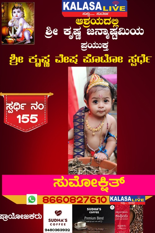 ಕಳಸ ಕಳಸ ತಾಲ್ಲೂಕು ಶ್ರೀ ಕೃಷ್ಣ ವೇಷ ಸ್ಪರ್ಧೆ ಸ್ಪರ್ಧಿ ನಂ: 155 ಸುಮೋಕ್ಷಿತ್, SUDISH SUVARNA August 28, 2022 Spread the love Post navigation Previous ಶ್ರೀ ಕೃಷ್ಣ ವೇಷ ಸ್ಪರ್ಧೆ ಸ್ಪರ್ಧಿ ನಂ: 154 ನಿವೇದನ್,Next ಶ್ರೀ ಕೃಷ್ಣ ವೇಷ ಸ್ಪರ್ಧೆ ಸ್ಪರ್ಧಿ ನಂ:156 ಸಾನ್ವಿ, Leave a Reply Cancel replyYour email address will not be published. Required fields are marked *Comment * Name * Email * Website Save my name, email, and website in this browser for the next time I comment. Related Stories ಹೊರನಾಡಿನಲ್ಲಿ ಪೊರಿಪಿನ ಮಾತೆ ಜಲದುರ್ಗೆ ನಾಟಕ ಏಪ್ರಿಲ್ 19ಕ್ಕೆ ಕಳಸ ತಾಲ್ಲೂಕು ಕ್ರೀಡೆ ಹೊರನಾಡು ಹೊರನಾಡಿನಲ್ಲಿ ಪೊರಿಪಿನ ಮಾತೆ ಜಲದುರ್ಗೆ ನಾಟಕ ಏಪ್ರಿಲ್ 19ಕ್ಕೆ April 18, 2026 ಕಳಸದಲ್ಲಿ ಕಾಡುಕೋಣನ ಅಟ್ಟಹಾಸಕ್ಕೆ ಬಲಿಯಾದ ಬಡ ಕಾರ್ಮಿಕ; ತಬ್ಬಲಿಯಾದ ಪುಟ್ಟ ಕಂದಮ್ಮ, ಗರ್ಭಿಣಿ ಪತ್ನಿಯ ಆಕ್ರಂದನ ಕಳಸ ಕಳಸ ತಾಲ್ಲೂಕು ಕ್ರೈಂ ಕಳಸದಲ್ಲಿ ಕಾಡುಕೋಣನ ಅಟ್ಟಹಾಸಕ್ಕೆ ಬಲಿಯಾದ ಬಡ ಕಾರ್ಮಿಕ; ತಬ್ಬಲಿಯಾದ ಪುಟ್ಟ ಕಂದಮ್ಮ, ಗರ್ಭಿಣಿ ಪತ್ನಿಯ ಆಕ್ರಂದನ April 18, 2026 ಬಾಳೆಹೊಳೆ: 23ನೇ ವರ್ಷದ ‘ವಸಂತ ವೇದ ಶಿಬಿರ’ಕ್ಕೆ ಚಾಲನೆ ಕಳಸ ಕಳಸ ತಾಲ್ಲೂಕು ಧಾರ್ಮಿಕ ಬಾಳೆಹೊಳೆ: 23ನೇ ವರ್ಷದ ‘ವಸಂತ ವೇದ ಶಿಬಿರ’ಕ್ಕೆ ಚಾಲನೆ April 17, 2026