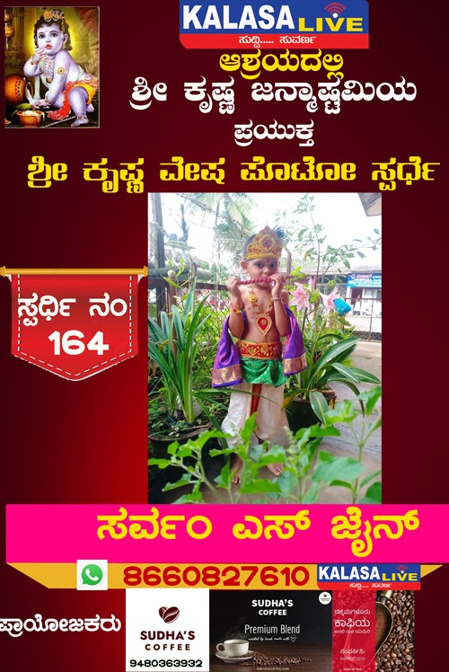 ಕಳಸ ಕಳಸ ತಾಲ್ಲೂಕು ಶ್ರೀ ಕೃಷ್ಣ ವೇಷ ಸ್ಪರ್ಧೆ ಸ್ಪರ್ಧಿ ನಂ:164 ಸರ್ವಂ ಎಸ್ ಜೈನ್, SUDISH SUVARNA August 28, 2022 Spread the love Post navigation Previous ಶ್ರೀ ಕೃಷ್ಣ ವೇಷ ಸ್ಪರ್ಧೆ ಸ್ಪರ್ಧಿ ನಂ:163 ಬ್ರಿಯಾನ್ ತಾವ್ರೋ,Next ಶ್ರೀ ಕೃಷ್ಣ ವೇಷ ಸ್ಪರ್ಧೆ ಸ್ಪರ್ಧಿ ನಂ:165 ಅರ್ಚಿತ್ ಹೊಳ್ಳ, Leave a Reply Cancel replyYour email address will not be published. Required fields are marked *Comment * Name * Email * Website Save my name, email, and website in this browser for the next time I comment. Related Stories ಹೊರನಾಡಿನಲ್ಲಿ ಪೊರಿಪಿನ ಮಾತೆ ಜಲದುರ್ಗೆ ನಾಟಕ ಏಪ್ರಿಲ್ 19ಕ್ಕೆ ಕಳಸ ತಾಲ್ಲೂಕು ಕ್ರೀಡೆ ಹೊರನಾಡು ಹೊರನಾಡಿನಲ್ಲಿ ಪೊರಿಪಿನ ಮಾತೆ ಜಲದುರ್ಗೆ ನಾಟಕ ಏಪ್ರಿಲ್ 19ಕ್ಕೆ April 18, 2026 ಕಳಸದಲ್ಲಿ ಕಾಡುಕೋಣನ ಅಟ್ಟಹಾಸಕ್ಕೆ ಬಲಿಯಾದ ಬಡ ಕಾರ್ಮಿಕ; ತಬ್ಬಲಿಯಾದ ಪುಟ್ಟ ಕಂದಮ್ಮ, ಗರ್ಭಿಣಿ ಪತ್ನಿಯ ಆಕ್ರಂದನ ಕಳಸ ಕಳಸ ತಾಲ್ಲೂಕು ಕ್ರೈಂ ಕಳಸದಲ್ಲಿ ಕಾಡುಕೋಣನ ಅಟ್ಟಹಾಸಕ್ಕೆ ಬಲಿಯಾದ ಬಡ ಕಾರ್ಮಿಕ; ತಬ್ಬಲಿಯಾದ ಪುಟ್ಟ ಕಂದಮ್ಮ, ಗರ್ಭಿಣಿ ಪತ್ನಿಯ ಆಕ್ರಂದನ April 18, 2026 ಬಾಳೆಹೊಳೆ: 23ನೇ ವರ್ಷದ ‘ವಸಂತ ವೇದ ಶಿಬಿರ’ಕ್ಕೆ ಚಾಲನೆ ಕಳಸ ಕಳಸ ತಾಲ್ಲೂಕು ಧಾರ್ಮಿಕ ಬಾಳೆಹೊಳೆ: 23ನೇ ವರ್ಷದ ‘ವಸಂತ ವೇದ ಶಿಬಿರ’ಕ್ಕೆ ಚಾಲನೆ April 17, 2026
