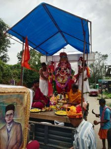 ಮೆರವಣಿಗೆಯ ದಾರಿಯುದ್ದಕ್ಕೂ ಭಕ್ತಾದಿಗಳು ಗಣಪನಿಗೆ ಹಣ್ಣುಕಾಯಿ ಅರ್ಪಿಸಿದರು.