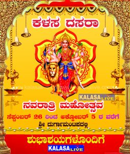 ಸೆಷ್ಟಂಬರ್ 26 ರಿಂದ ಅಕ್ಕೋಬರ್ 5ರ ವರೆಗೆ ಕಳಸ ದುರ್ಗಾ ಮಂಟಪದಲ್ಲಿ ನಡೆಯುವ ದುರ್ಗಾ ಪೂಜಾ ಮಹೋತ್ಸವಕ್ಕೆ ತಳಿರು ತೋರಣ, ವಿದ್ಯುತ್ ದೀಪಗಳ ಅಲಂಕಾರವನ್ನು ಮಾಡಲಾಗಿದೆ. ದುರ್ಗಾ ದೇವಿಯ ವಿಗ್ರಹವನ್ನು ಪ್ರತಿಷ್ಠಾಪನೆಗೆ ಸಿದ್ದಪಡಿಸಲಾಗಿದೆ.