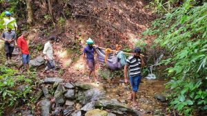 ಕಳಸ ತಾಲ್ಲೂಕಿನ ಸಂಸೆ ಗ್ರಾಮ ಪಂಚಾಯಿತಿ ವ್ಯಾಪ್ತಿಯ ಈಚಲಹೊಳೆ ಗಿರಿಜನ ಕಾಲೋನಿಯ ಮಹಿಳೆ ಶೇಷಮ್ಮ ಬುಧವಾರ ತೀವ್ರ ಅಸ್ವಸ್ಥರಾಗಿದ್ದರು. ಗ್ರಾಮಕ್ಕೆ ರಸ್ತೆ ಸಂಪರ್ಕ ಇಲ್ಲದ ಹಿನ್ನಲೆಯಲ್ಲಿ ಗ್ರಾಮದ ಗಿರಿಜನರು ಜೋಳಿಗೆ ಕಟ್ಟಿ ಶೇಷಮ್ಮ ಅವರನ್ನು ಹೊತ್ತುಕೊಂಡು ಬಂದು ಕಳಸ ಆಸ್ಪತ್ರೆಗೆ ಸೇರಿಸಿದರು.
