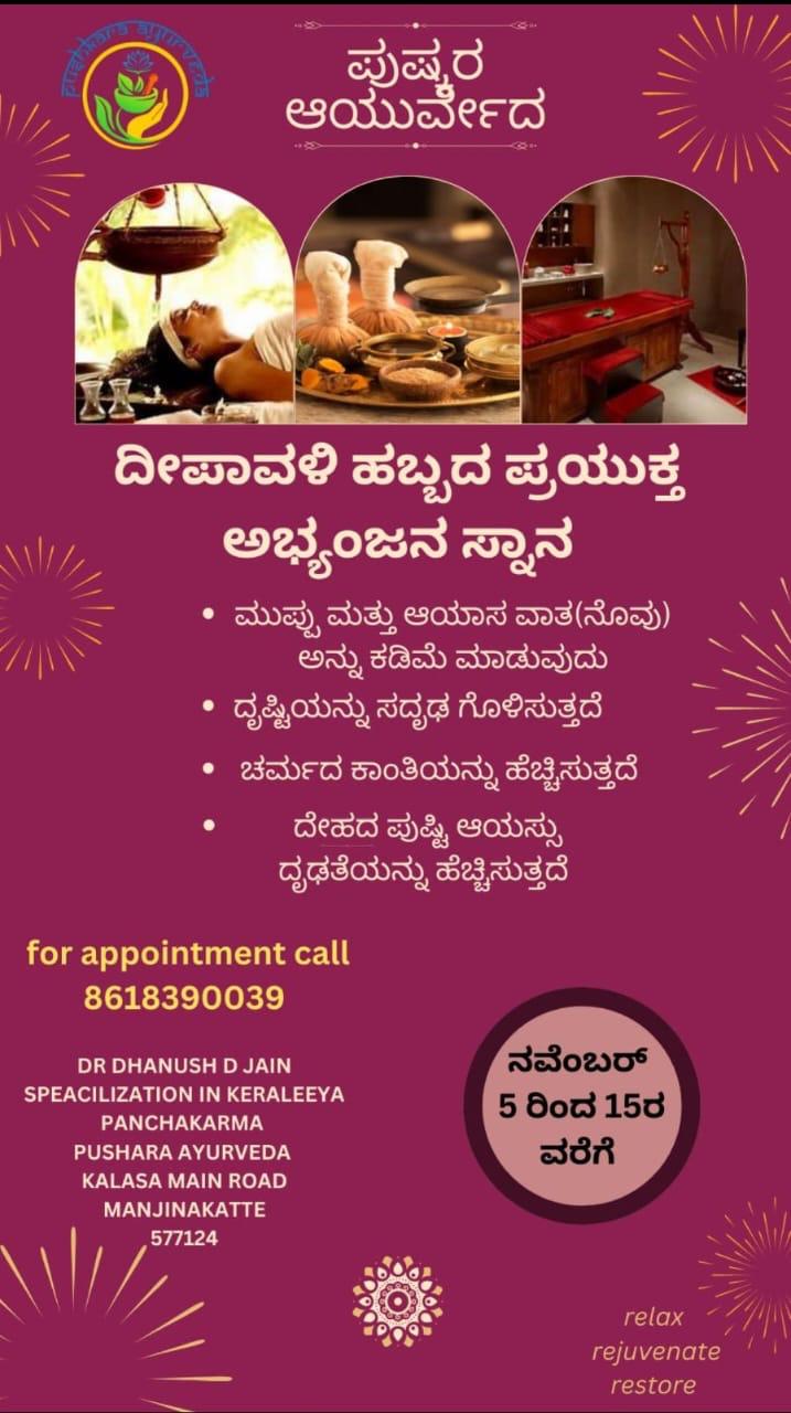 ಪುಷ್ಕರ ಆಯುರ್ವೇದ ದೀಪಾವಳಿ ಹಬ್ಬದ ಅಭ್ಯಂಜನ ಸ್ನಾನ