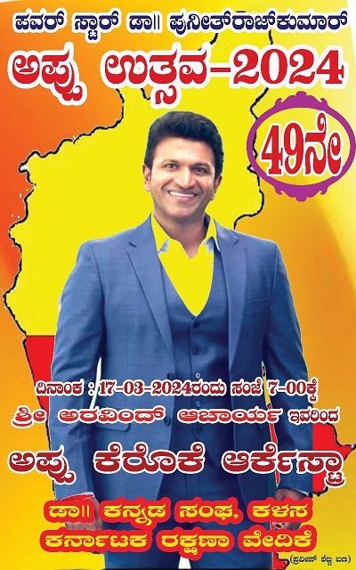 ಅಂದು ಸಂಜೆ ಸಂಘದ ಕಛೇರಿ ಮುಂಬಾಗ ಅನ್ನದಾನ ಮತ್ತು ಅರವಿಂದ ಆಚಾರ್ಯ ಇವರಿಂದ ಅಪ್ಪು ಕರೋಕೆ ಆರ್ಕೇಸ್ಟ್ರಾ ಇರಲಿದೆ ಎಂದು ತಿಳಿಸಿದ್ದಾರೆ.