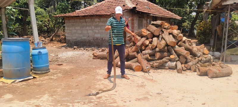 ತರುವೆ ಗ್ರಾಮದ ದೀಕ್ಷಿತ್ ಎಂಬುವರ ಮನೆಗೆ ಬಂದ ನಾಗರಹಾವು ನೇರವಾಗಿ ಮಂಚದ ಕೆಳ ಭಾಗಕ್ಕೆ ಸೇರಿದೆ. ಮನೆಯಲ್ಲಿದ್ದವರು ಹಬ್ಬದ ಬ್ಯುಸಿಯಲ್ಲಿದ್ದ ಕಾರಣ ಯಾರು ಅμÁ್ಟಗಿ ಗಮನಿಸಿಲ್ಲ. ಬೆಕ್ಕಿನ ಮರಿಯನ್ನು ನುಂಗಿದ ನಾಗರಹಾವು ಸ್ವತಃ ಹೊರ ಬಂದು ಮುಂದೆ ಸಂಚರಿಸಲಾಗದೆ ಪರದಾಡುತ್ತಿತ್ತು. ಅವನ ಕಂಡು ಮನೆಯವರು ಕೂಗಾಡುತ್ತಿದ್ದಂತೆ ಪುನಃ ಮನೆಯ ಒಳಗೆ ಹೋಗಲು ಪ್ರಯತ್ನಿಸಿದೆ. ಮನೆಯವರು ಕೂಡಲೇ ಬಾಗಿಲು ಹಾಕಿದ್ದಾರೆ. ಸ್ಥಳಕ್ಕೆ ಬಂದ ಉರಗತಜ್ಞ ಸ್ನೇಕ್ ಆರೀಫ್ ಬೆಕ್ಕಿನ ಮರಿ ನುಂಗಿದ್ದರಿಂದ ಸುಸ್ತಾಗಿ ಸಂಚರಿಸಲಾಗದೆ ಪರದಾಡುತ್ತಿದ್ದ ಹಾವನ್ನ ಸೆರೆಹಿಡಿದು ನುಂಗಿದ್ದ ಬೆಕ್ಕಿನ ಮರಿಯನ್ನು ಹಾವಿನ ಹೊಟ್ಟೆಯಿಂದ ಕಕ್ಕಿಸಿದ್ದಾರೆ. ನಾಗರಹಾವು ಬೆಕ್ಕಿನ ಮರಿಯನ್ನ ಹೊರ ಹಾಕುತ್ತಿದ್ದಂತೆ ಆಕ್ಟಿವ್ ಆಗಿ ತಪ್ಪಿಸಿಕೊಳ್ಳಲು ಯತ್ನಿಸಿ, ಮನೆಯ ಮುಂದೆ ಇದ್ದ ಸೌದೆ ಅಡಿ ಸೇರಿಕೊಳ್ಳಲು ಮುಂದಾಗಿತ್ತು. ಸ್ನೇಕ್ ಆರೀಫ್ ಹಾವನ್ನ ಸೆರೆ ಹಿಡಿದು ಚಾರ್ಮಾಡಿ ಅರಣ್ಯಕ್ಕೆ ಬಿಟ್ಟಿದ್ದಾರೆ. ಮಲೆನಾಡು ಭಾಗದಲ್ಲಿ ದಿನದಿಂದ ದಿನಕ್ಕೆ ಬಿಸಿಲಿನ ತಾಪ ಹೆಚ್ಚಾಗುತ್ತಿದ್ದು ಕಾಡು ಪ್ರಾಣಿಗಳು ಆಹಾರ ಹರಿಸಿ ನಾಡಿಗೆ ಬರುತ್ತಿವೆ. ಈಗಾಗಲೇ ಮಲೆನಾಡಿನದ್ಯಂತ ಆನೆ, ಹುಲಿ, ಚಿರತೆ ಹಾಗೂ ಕಾಡುಕೋಣದ ಹಾವಳಿ ಮಿತಿಮೀರಿದೆ. ಬಿಸಿಲಿನ ತಾಪಕ್ಕೆ ಭೂಮಿಯ ಒಳಭಾಗದಲ್ಲೂ ಬಿಸಿ ಹೆಚ್ಚಾಗಿ ಅರಣ್ಯದಲ್ಲಿ ಸಮರ್ಪಕವಾಗಿ ಕುಡಿಯಲು ನೀರು ಹಾಗೂ ಆಹಾರ ಸಿಗದ ಕಾರಣ ನಾಗರಹಾವು ಸೇರಿದಂತೆ ಕಾಳಿಂಗ ಸರ್ಪಗಳು ಗ್ರಾಮಗಳತ್ತ ಬರುತ್ತಿವೆ. ಶೀಘ್ರವೇ ಮಳೆಯಾಗದಿದ್ದರೆ ಮತ್ತಷ್ಟು ಕಾಡುಪ್ರಾಣಿಗಳ ಹಾವಳಿ ಹೆಚ್ಚಾದರೂ ಆಶ್ಚರ್ಯವಿಲ್ಲ