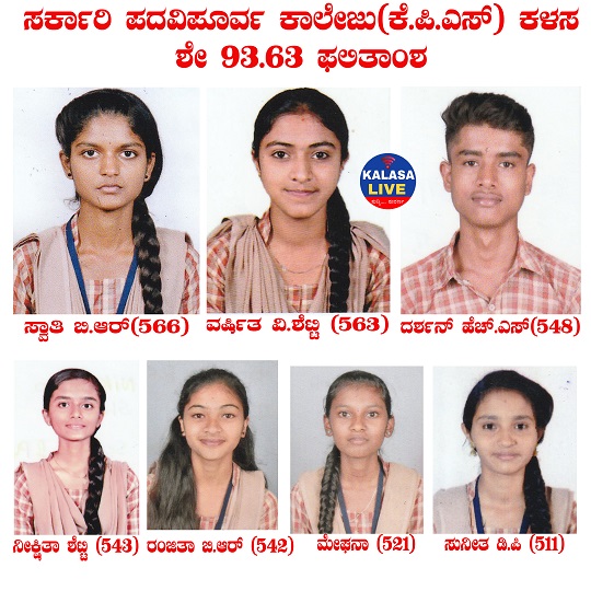 ಈ ಭಾರಿ ಕಳಸ ಪದವಿ ಪೂರ್ವ ಕಾಲೇಜಿನಲ್ಲಿ ವಿದ್ಯಾರ್ಥಿಗಳು ನಿರೀಕ್ಷೆಗೂ ಮೀರಿದ ಫಲಿತಾಂಶವನ್ನು ತಂದುಕೊಟ್ಟಿದ್ದಾರೆ.ಇದಕ್ಕಾಗಿ ಕಾಲೇಜು ಅಭಿವೃದ್ಧಿ ಸಮಿತಿ ಅಧ್ಯಕ್ಷರು, ಸದಸ್ಯರುಗಳು, ಪ್ರಾಂಶುಪಾಲರು, ಉಪನ್ಯಾಸಕರು, ಪೋಷಕರು ಅಭಿನಂದನೆ ಸಲ್ಲಿಸಿದ್ದಾರೆ.