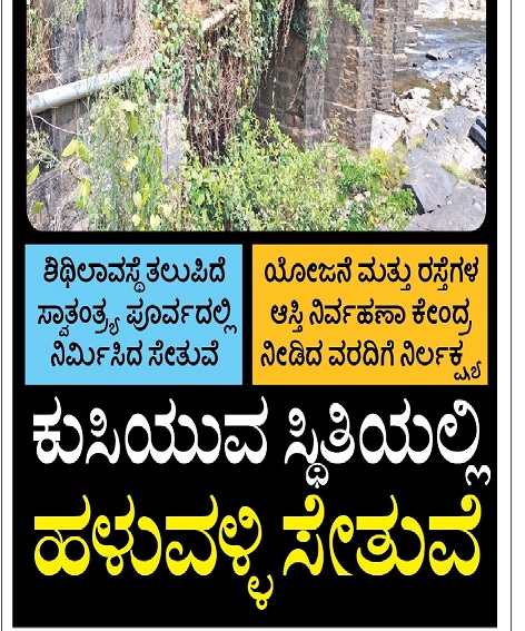 ಕಳಸ ತಾಲೂಕಿನಲ್ಲಿ ಭದ್ರಾ ನದಿಗೆ, ಕೋಟೆಹೊಳೆ, ಹೆಬ್ಬಾಳೆ, ಹೊಸೂರು ಎಂಬ ಪ್ರದೇಶಗಳಲ್ಲಿ ಸೇತುವೆಗಳನ್ನು ನಿರ್ಮಾಣ ಮಾಡಲಾಗುತ್ತಿದೆ. ಆದರೆ ಅಗತ್ಯವಾಗಿ ಬೇಕಾದ ಹಳುವಳ್ಳಿ ಸೇತುವೆಯನ್ನು ಮಾತ್ರ ಮರೆತಂತಿದೆ. ಪಿಡಬ್ಲ್ಯುಡಿ ಹೇಗಾದರೂ ದುರಸ್ಥಿ ಮಾಡದಿದರೆ ಅಪಾಯ ನಿಶ್ಚಿತ