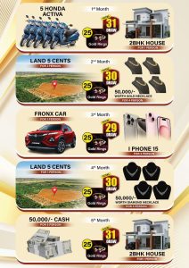 ಬ್ರೈಟ್ ಭಾರತ್ನ ಸೀಸನ್-2ರ ಮೊದಲ ಡ್ರಾ ಸೆಪ್ಟೆಂಬರ್ 13ಕ್ಕೆ ನಡೆಯಲಿದ್ದು, ಮೊದಲ ತಿಂಗಳಲ್ಲೇ ಒಬ್ಬ ಅದೃಷ್ಟಶಾಲಿಗೆ ಎರಡು ಬೆಡ್’ರೂಮಿನ ಸುಸಜ್ಜಿತ ಮನೆಯನ್ನು ಹಾಗು 5 ಜನರಿಗೆ ಆಕ್ಟಿವಾ ಮತ್ತು 25 ಜನರಿಗೆ ಚಿನ್ನದ ಉಂಗುರ ಗೆಲ್ಲುಲು ಅವಕಾಶವಿದೆ. ಜೊತೆಗೆ ಪ್ರತಿ ತಿಂಗಳು ಕೂಡ ಕಾರು, ಮನೆ, ಜಾಗ, ಬುಲೆಟ್, ಐಪೋನ್, ಚಿನ್ನ, ಡೈಮಂಡ್ ನಗದು ಬಹುಮಾನವಿದ್ದು, ಒಟ್ಟು 6 ಸುಸಜ್ಜಿತ ಮನೆ, 4 ಕಾರು, 4 ಜಾಗ ಹೀಗೆ ಕೋಟ್ಯಾಂತರ ರುಪಾಯಿಯ ಬಹುಮಾನಗಳನ್ನು ಗೆಲ್ಲುವ ಅವಕಾಶವನ್ನು ಬ್ರೈಟ್ ಭಾರತ್ ನೀಡಿದ್ದು, ಅದೃಷ್ಟವಂತರು ಎರಡು ಬೆಡ್ರೂಮಿನ ಹೊಸ ಮನೆಯನ್ನು ತಮ್ಮದಾಗಿಸಿಕೊಳ್ಳಲಿದ್ದಾರೆ.