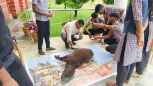 ಕಳಸ ಪ್ರಥಮ ದರ್ಜೆ ಕಾಲೇಜಿನ ಆವರಣದಲ್ಲಿಯೇ ನಾಯಿಗಳು ಕರುವೊಂದರ ಮೇಲೆರಗಿ ಕಚ್ಚಿ ಗಾಯಗೊಳಿಸಿವೆ.ಕೂಡಲೇ ವಿದ್ಯಾರ್ಥಿಗಳು ನಾಯಿಗಳನ್ನು ಓಡಿಸಿದ್ದಾರೆ.ಆದರೆ ತೀರ ಗಾಯಗೊಂಡ ಕರು ಎದ್ದು ನಡೆಯಲಾಗದೆ ಒದ್ದಾಡುತ್ತಿತ್ತು.ಪಶು ವೈದ್ಯರನ್ನು ಕರೆಸಿ ಗಾಯಗೊಂಡ ಕರುವಿಗೆ ಚಿಕಿತ್ಸೆ ನೀಡಿದ್ದಾರೆ.ವಿದ್ಯಾರ್ಥಿಗಳು ಕಾಲೇಜು ಬಳಿಯೇ ಗಾಯಗೊಂಡ ಕರುವನ್ನು ಪೋಷನೆ ಮಾಡಿ ನಂತರ ಕರುವಿನ ವಾರಿಸುದಾರರನ್ನು ಪತ್ತೆ ಹಚ್ಚಿ ಅವರಿಗೆ ಹಸ್ತಾಂತರಿಸಿದ್ದಾರೆ.