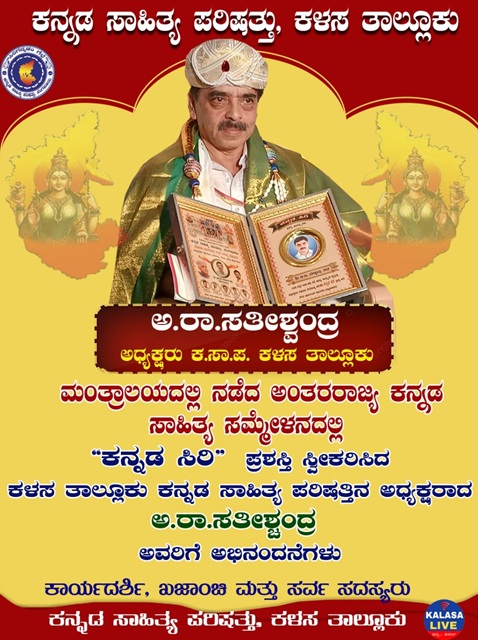 ಮಂತ್ರಾಲಯದಲ್ಲಿ ನಡೆದ ಅಂತರರಾಜ್ಯ ಕನ್ನಡ ಸಾಹಿತ್ಯ ಸಮ್ಮೇಳನದಲ್ಲಿ ಕಳಸ ಕ.ಸಾ.ಪ ತಾಲ್ಲೂಕು ಅಧ್ಯಕ್ಷ ಅ.ರಾ.ಸತೀಶ್ಚಂದ್ರ ಕನ್ನಡ ಸಿರಿ ಪ್ರಶಸ್ತಿ ಸ್ವೀಕರಿಸಿದರು. ಅಲ್ಲದೆ ಇದೇ ವೇದಿಕೆಯಲ್ಲಿ ಕವಿ, ಬರಹಗಾರ ಯೋಗಪಟು ವೈ ಪ್ರೇಂ ಕುಮಾರ್ ಬಹುಬಾಷಾ ಕವಿಗೋಷ್ಠಿಯಲ್ಲಿ ಕರ್ನಾಟಕದಿಂದ ಪ್ರತಿನಿಧಿಸಿ ಕವನ ವಾಚನ ಮಾಡಿದರು.