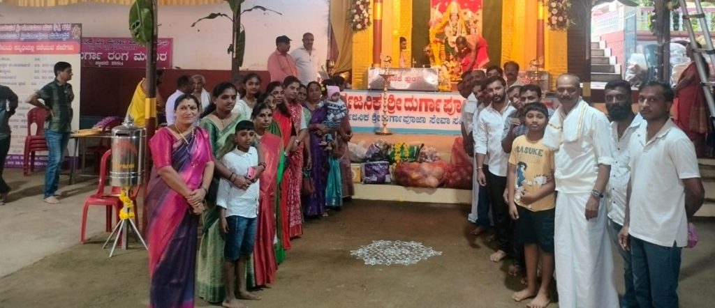 ಕಳಸ ಪಟ್ಟಣದಲ್ಲಿ ನಡೆಯುತ್ತಿರುವ ಶ್ರೀ ದುರ್ಗಾ ಪೂಜಾ ಮಹೋತ್ಸವದಲ್ಲಿ ಸವಿತ ಸಮಾಜದ ಸದಸ್ಯರು ದೇವರಿಗೆ ವಿಶೇಷ ಹಸಿರುಹೊರೆ ಕಾಣಿಕೆ ಸಲ್ಲಿಸಿ ಭಕ್ತಿಯ ಸಂಕೇತವನ್ನು ತೋರಿಸಿದರು.