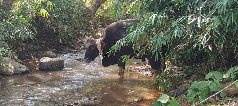 ಈ ಕಾಡುಕೋಣದ ಪರಿಸ್ಥಿತಿ ಕಂಡು ಕಲ್ಲುಹೃದಯದವರಿಗೂ ಕಣ್ಣೀರು ಬರುವಂತಿದೆ. ಕಿಡಿಗೇಡಿಗಳು ಹಾರಿಸಿದ ಗುಂಡೇಟಿಗೋ ಅಥವ ಬಿದ್ದು ಗಾಯ ಮಾಡಿಕೊಂಡಿದ್ದೋ ಅದರ ಹಿಂಬದಿಯ ಬಲಗಾಲಿ ಪಕ್ಕದಲ್ಲಿ ಆಳವಾದ ಗಾಯವಾಗಿದೆ. ಇದರ ಬೆನ್ನಲ್ಲೇ ಆ ಪ್ರಾಣಿ ತನ್ನ ಎರಡೂ ಕಣ್ಣುಗಳ ದೃಷ್ಟಿಯನ್ನೂ ಕಳೆದುಕೊಂಡಿದೆ. ಕಳೆದ 15 ದಿನಗಳಿಂದ ಕಾಲಿನ ನೋವು ಮತ್ತು ಅಸಹಾಯಕತೆಯಿಂದಾಗಿ ಹಳ್ಳದ ಬದಿಯಲ್ಲೇ ಕುಸಿದು ಬಿದ್ದಿರುವ ಈ ಪ್ರಾಣಿ, ಎದ್ದು ನಿಲ್ಲಲೂ ಸಾಧ್ಯವಾಗದೆ ಮರಣ ವೇದನೆ ಅನುಭವಿಸುತ್ತಿದೆ.
